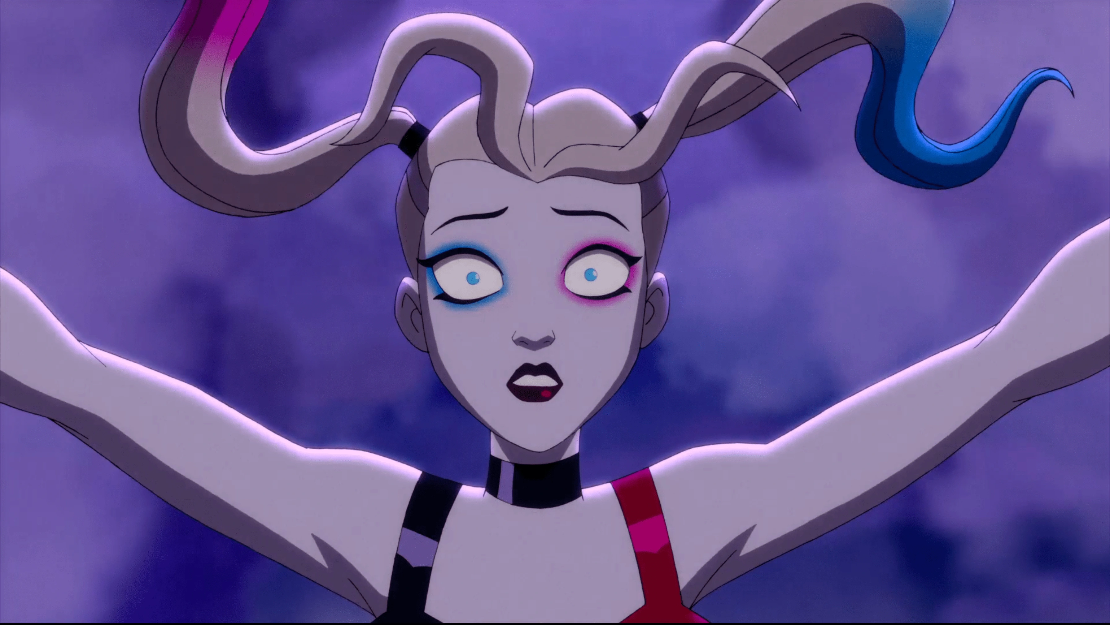 In perfect mirroring of the Joker's abandonment of Harley Quinn in "Til Death Do Us Part", the Joker begins by saying, "You know, I'd love to take you puddin'...", only instead of saying, "but I'd never deny you the pleasure of buying me time to escape", this time he invites Harley to come with him, and she squeals in delight. As they speed away from Batman, Harley says she dreamed of escaping with him, and they begin kissing passionately. Just as Batman's ship comes parallel with their helicopter, the Joker chooses that exact moment to shove Harley out of the helicopter and into the waters below.