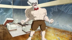 As Alfred rampages through the penthouse, Bruce tells Lois to take the kids somewhere safe using the secret passageway. As Dick wonders how to defeat the enhanced Alfred, Ivy remembers to get the venom out of one’s system, they need to get the user to sweat, so the group lures Alfred to the sauna, but when they arrive, the crazed butler destroys it, putting the kibosh on their plan. However, in all the chaos, Harley managed to save Dick, so they both agreed to call it even. Just then, Shaun arrives because he mistakenly took the wrong secret tunnel. Harley uses this to the group’s advantage and tells the shark kid to eat everything. As he does just as Harley requested, all the devastation to the bathroom causes the dual showers to spray Alfred, causing his ankle monitor to short-circuit and electrocute him, rendering Alfred completely incapacitated.
