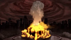 Thanks to the team effort, Nora, Cold, Shark, and Volcana create a volcanic-like explosion strong enough to break through the barrier. Despite Lex's fury, the Moon-based scientist contacts him to inform him that the Earth's ozone layer has expanded enough for his ray gun to reach the Earth's atmosphere. On Lex's order, the scientist fires it, plunging the world into darkness.