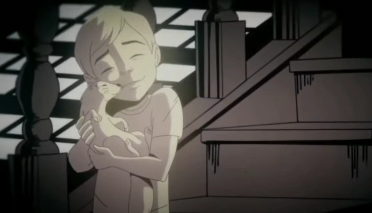 Joker as child with his only friend, Mr. Ferris the ferret.