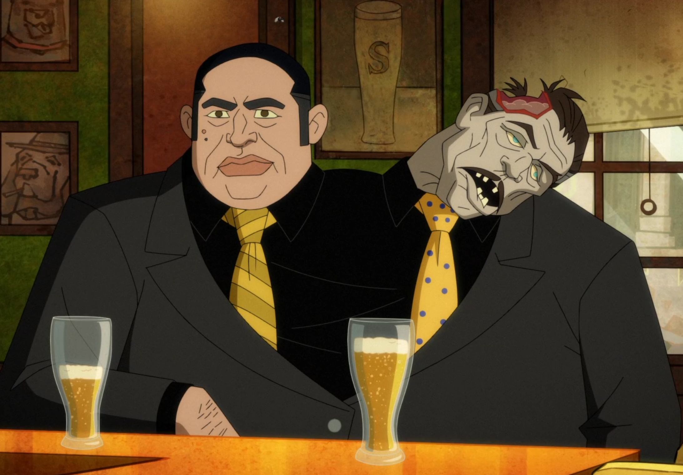 Moe and Joe Dubelz are a pair of recurring characters on the T.V. series, Kite Man: Hell Yeah!. They are conjoined twins, who work together as gangsters and are frequent patrons at Noonan's Bar. Joe was eventually shot and killed in a gunfight, but Moe goes into denial about his death, making him believe that he survived and treats his corpse as if it was alive until his corpse's head was blown off.