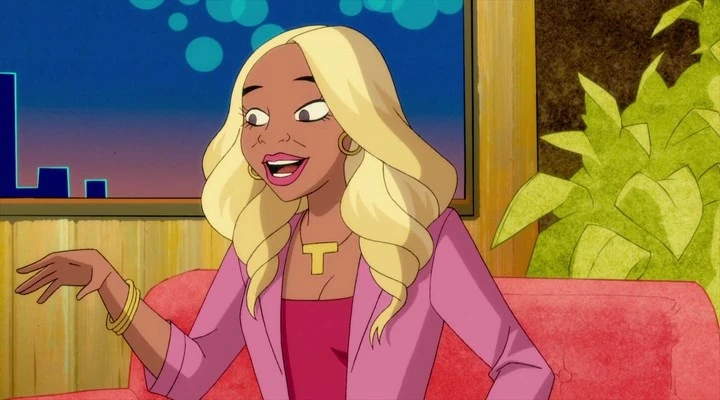 Featuring Robin on her talk show, Tawny interviews him as he discusses his encounter with Harley, making her his first nemesis at only twelve years old. She compliments Robin for it, calling Robin a little sweet potato pie, and ends it with wanting to eat him all up, which Robin cutely confirms, making Tawny fawn over him.