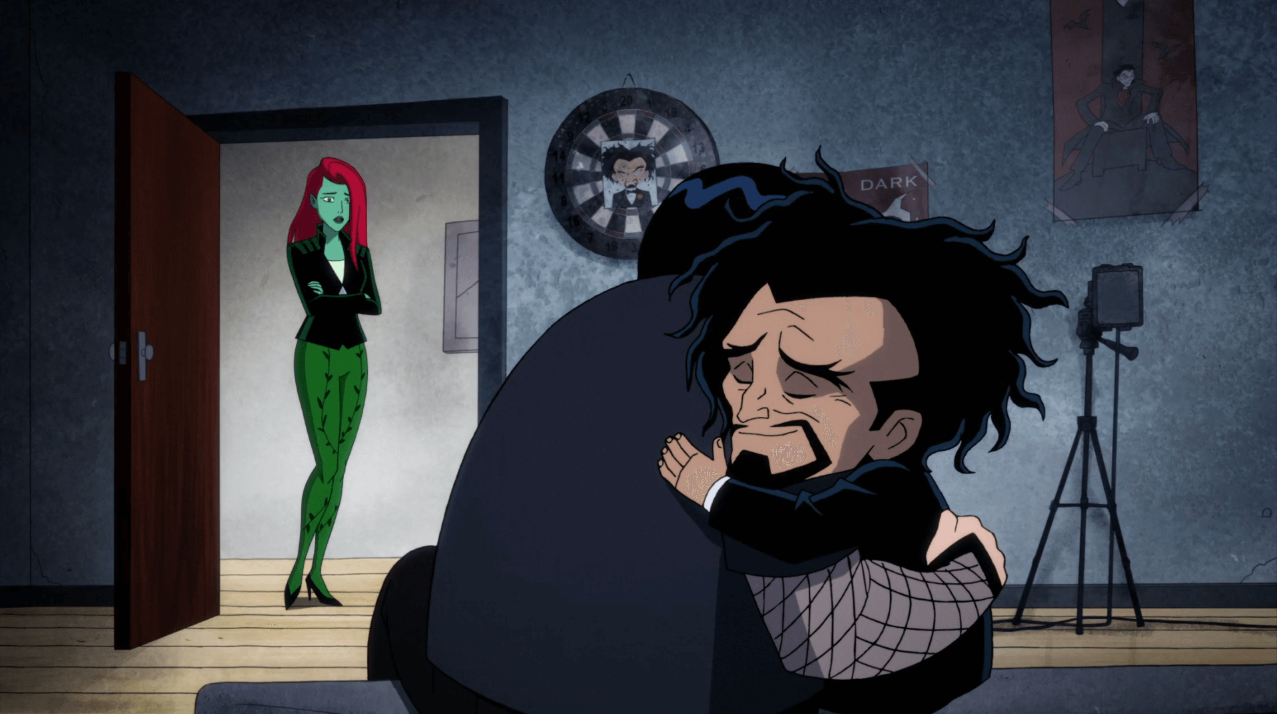 Harley checks the news regarding the WayneTech heist, only to find a high-profile evil blogger, the Cowled Critic, trashing her for "leaving behind" crew members. Also, Poison Ivy and Doctor Psycho are supposedly in a relationship after Ivy caught Psycho during his fall.